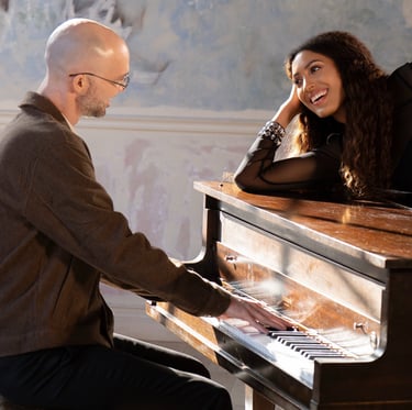 Eli & Liv brings together pianist and composer Eli and Belgian singer Liv, two formally trained musicians with backgrounds in composition and jazz performance. Liv has appeared on international stages including Lido de Paris and Palais 12 in Brussels, while Eli’s work as a composer spans ensembles, podcasts, and interdisciplinary productions. Together they create intimate piano-vocal performances that captivate audiences and leave a lasting impression.